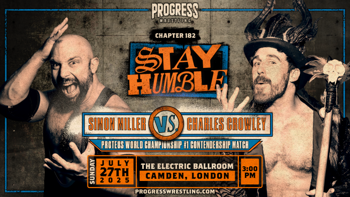 Now, it’s official: Simon Miller vs Charles Crowley at Chapter 182: Stay Humble, live from the Electric Ballroom in London on Sunday, 27 July. The winner will earn a shot at the Proteus Championship — a title both men claim is their destiny.