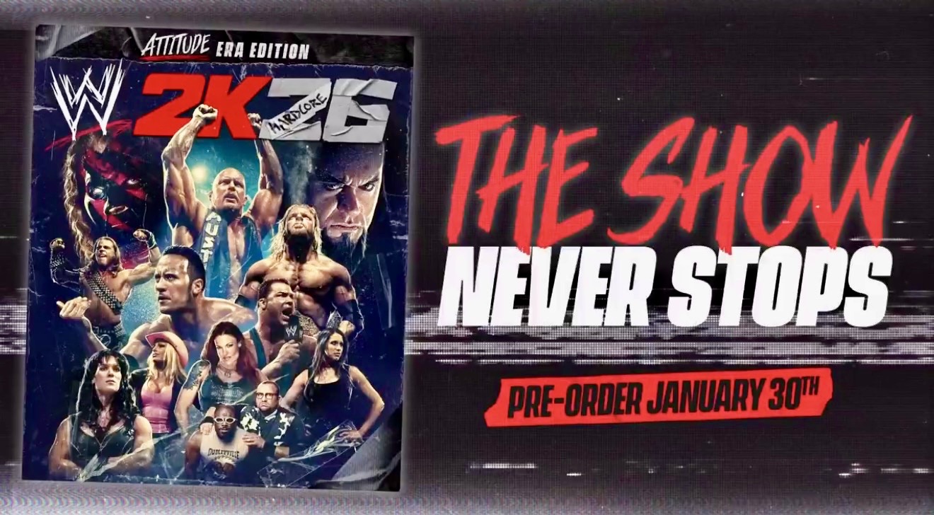WWE has announced on tonight’s SmackDown episode a special Attitude Era edition of WWE 2K26. The game cover features an epic ensemble of WWE Superstars from the “Attitude Era”.