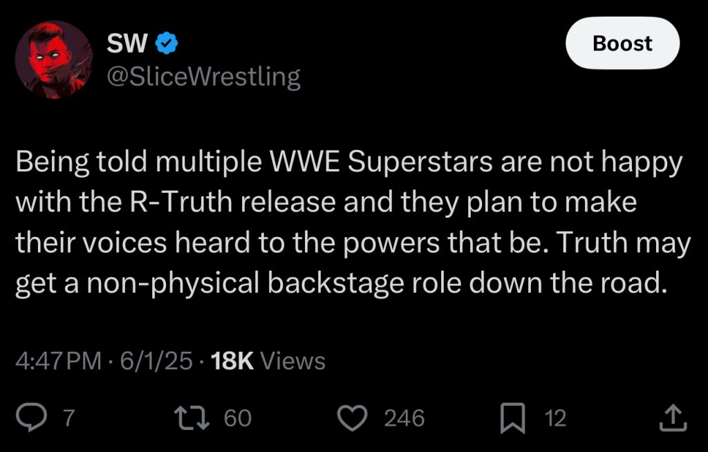 - The release of R-Truth was 100% real as confirmed to us by our WWE sources.