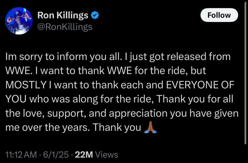 On Sunday, June 1st 2025 R-Truth announced he was being released by WWE.