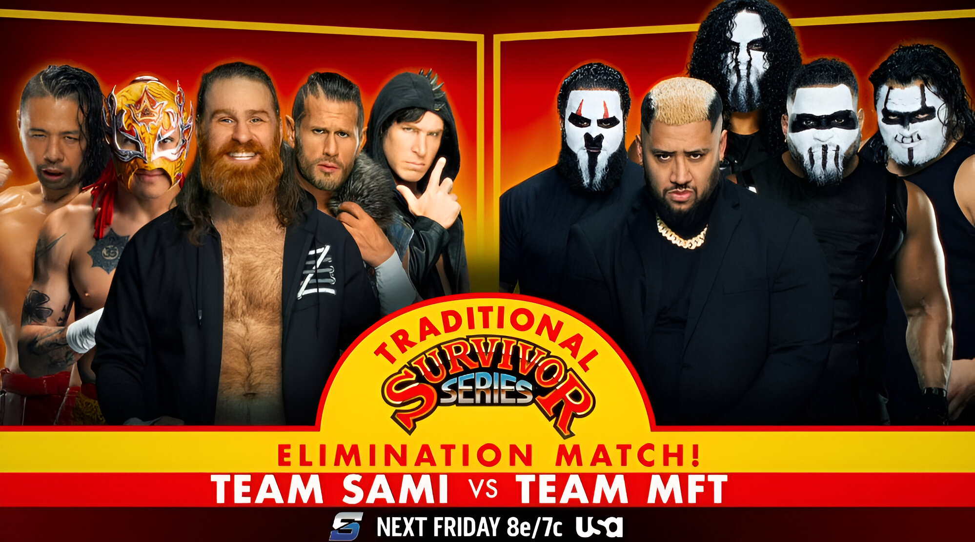 • Sami Zayn, Shinsuke Nakamura, Rey Fenix and The Motor City Machine Guns will battle The MFTs in a 5-on-5 Traditional Survivor Series Elimination Match